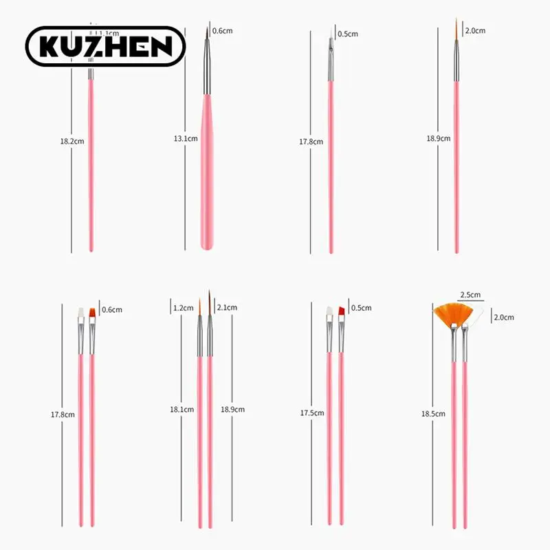 15Pcs Professional Nail Art Brush Set for Manicure Rhinestone Acrylic Paint Brushes Kit UV Gel Polish Nails Lining Pen Gradient